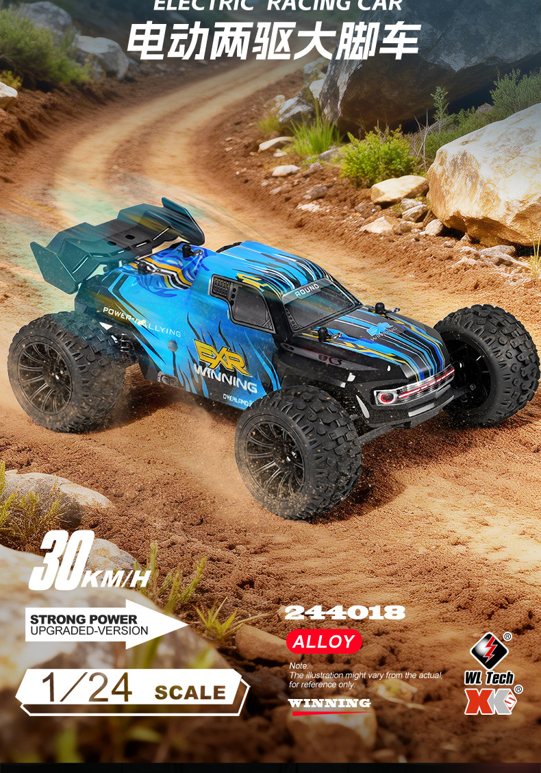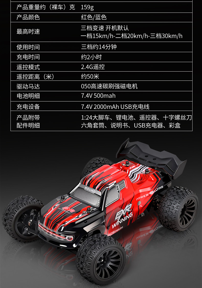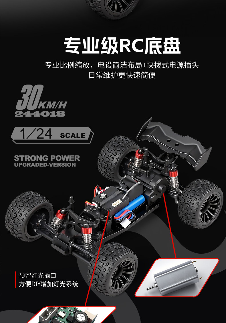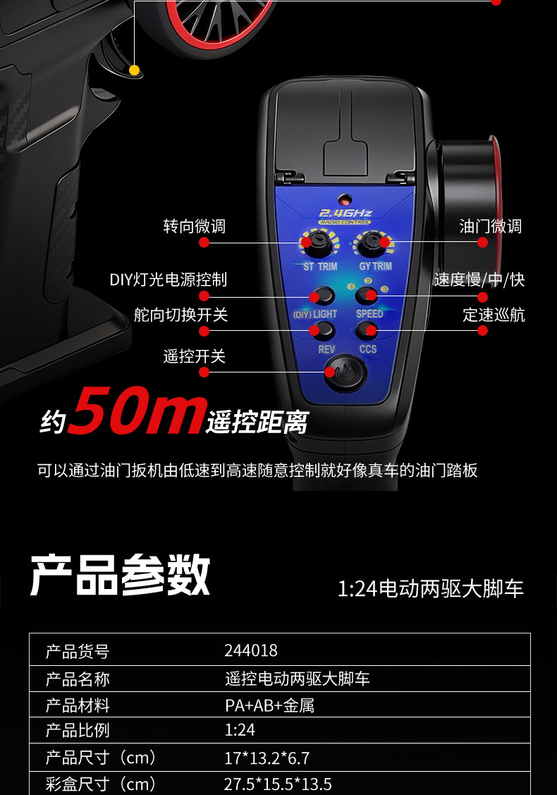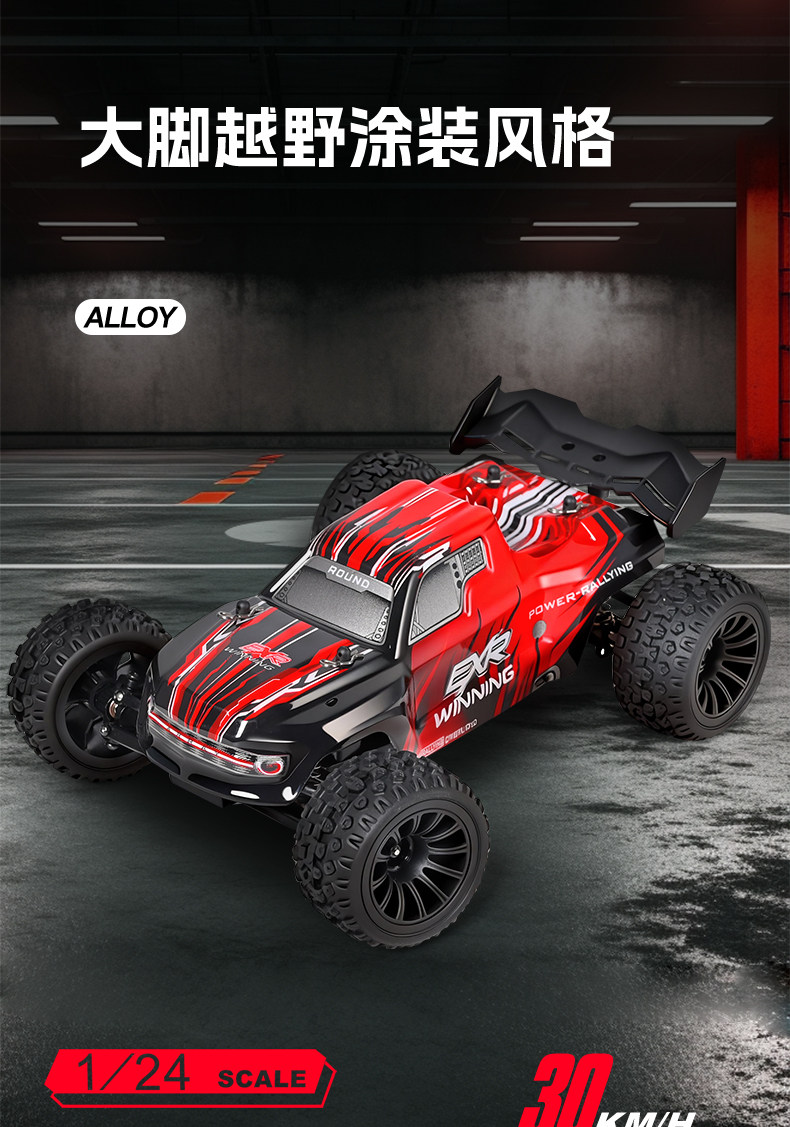 ⚙ 1:24 全比例遙控有刷馬達後驅大腳車 (RTR版本, 即買即玩)