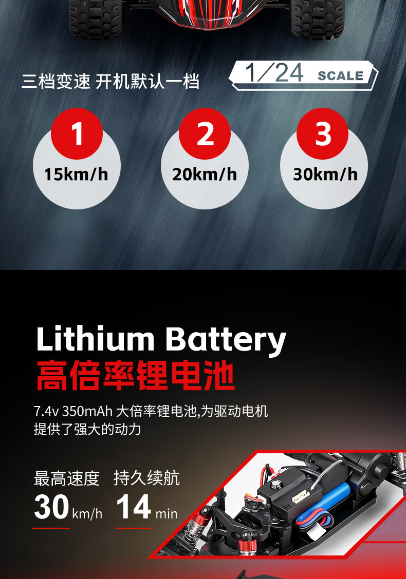 ⚙ 配備 2.4Ghz遙控及接收, 能同時多車競賽, 避免因干擾而影響遙控反應