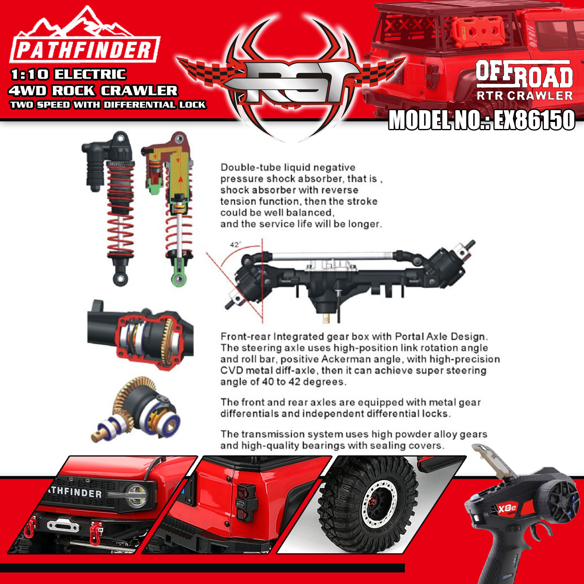全新 瑞泰 RGT 1:10 EX86150 PATHFINDER 攀爬越野車 | 門橋式結構 | 2段速機械波箱 | 前後差速鎖 | 2.4Ghz 遙控 | 4輪驅動 | 火焰橙