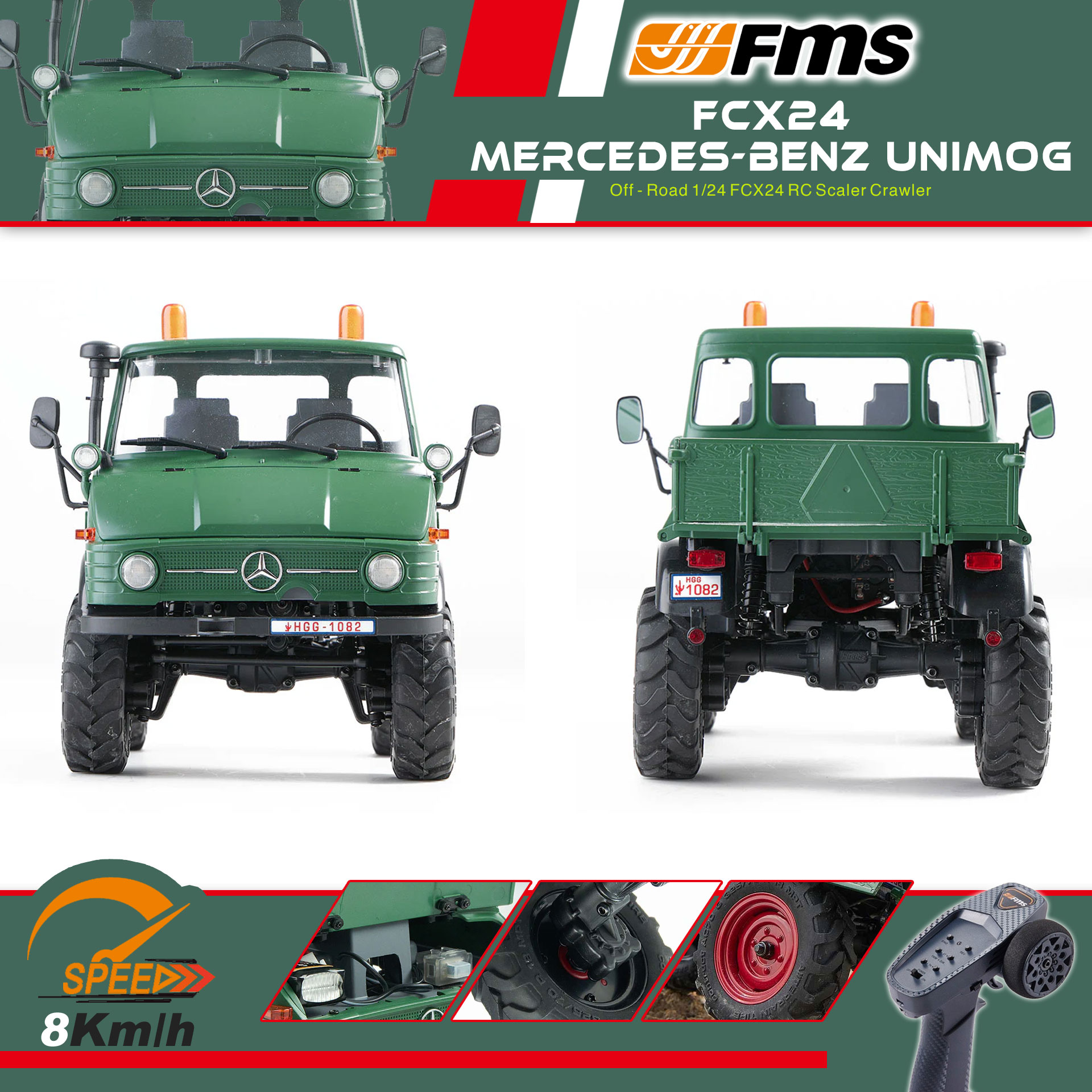 全新 🌟 FMS 🌟 1:24 FCX24 Mercedes-Benz Unimog 421 | 烏尼莫克 攀爬車 | 2.4Ghz 遙控 | 4輪驅動 | 2段機械變速 | 迷你慢爬車 | 遙控車