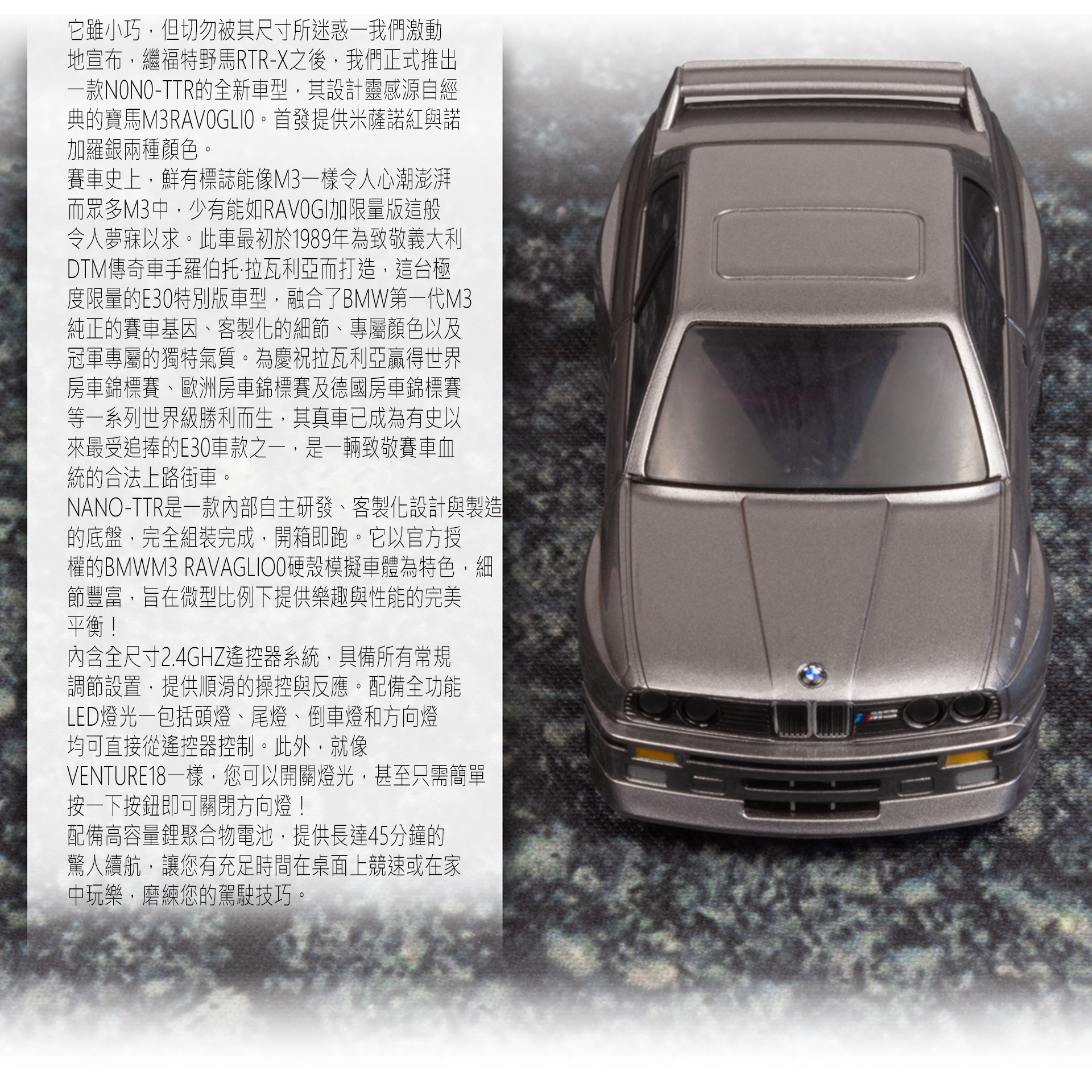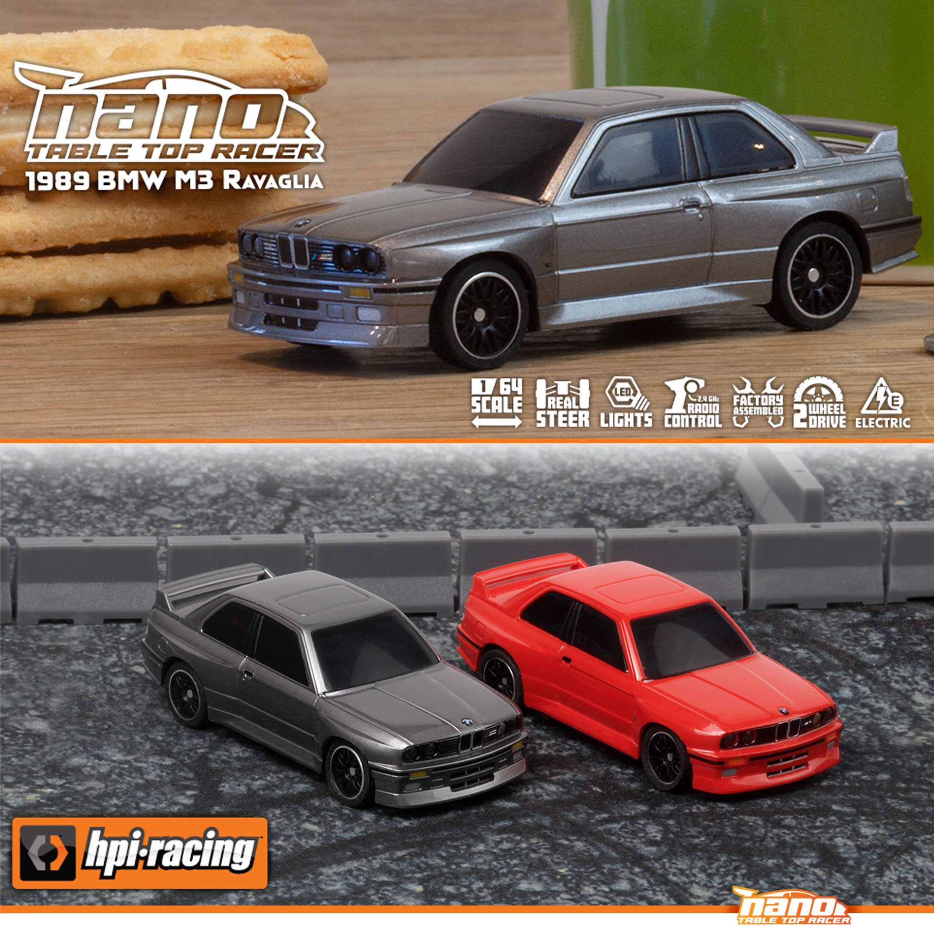 全新 HPI 1/64 160991 nano-TTR 1989 BMW M3 Ravaglia RTR | 復刻版BMW迷你遙控車 | 聯動車燈