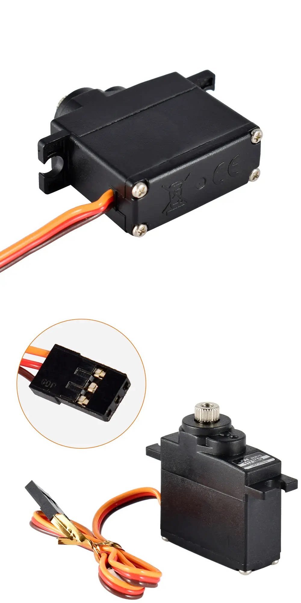 工作電壓 : DC 4.8 - 6.0V 速度: 0.13 sec/60度 (4.8V), 0.11 sec/60度 (6.0V) 扭力: 3.0 kg.cm (4.8V), 3.5 kg.cm (6.0V) 尺寸 : 30 x 12 x 31.7CM 重量 : 17.5g 連接線 : JR 180mm 包含舵機配件包, 舵機臂