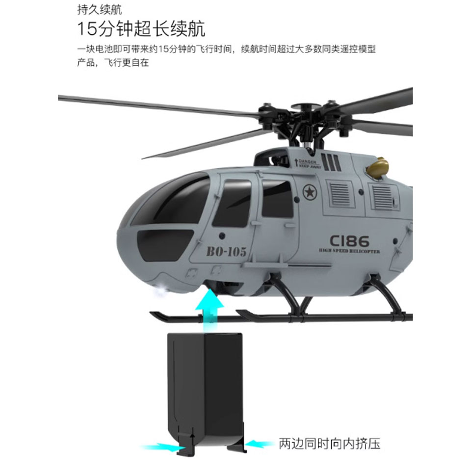 全新 RC ERA C186 像真 BO-105 遙控直昇機 | 氣壓定高 | 一鍵升降 | 2.4Ghz 4通遙控