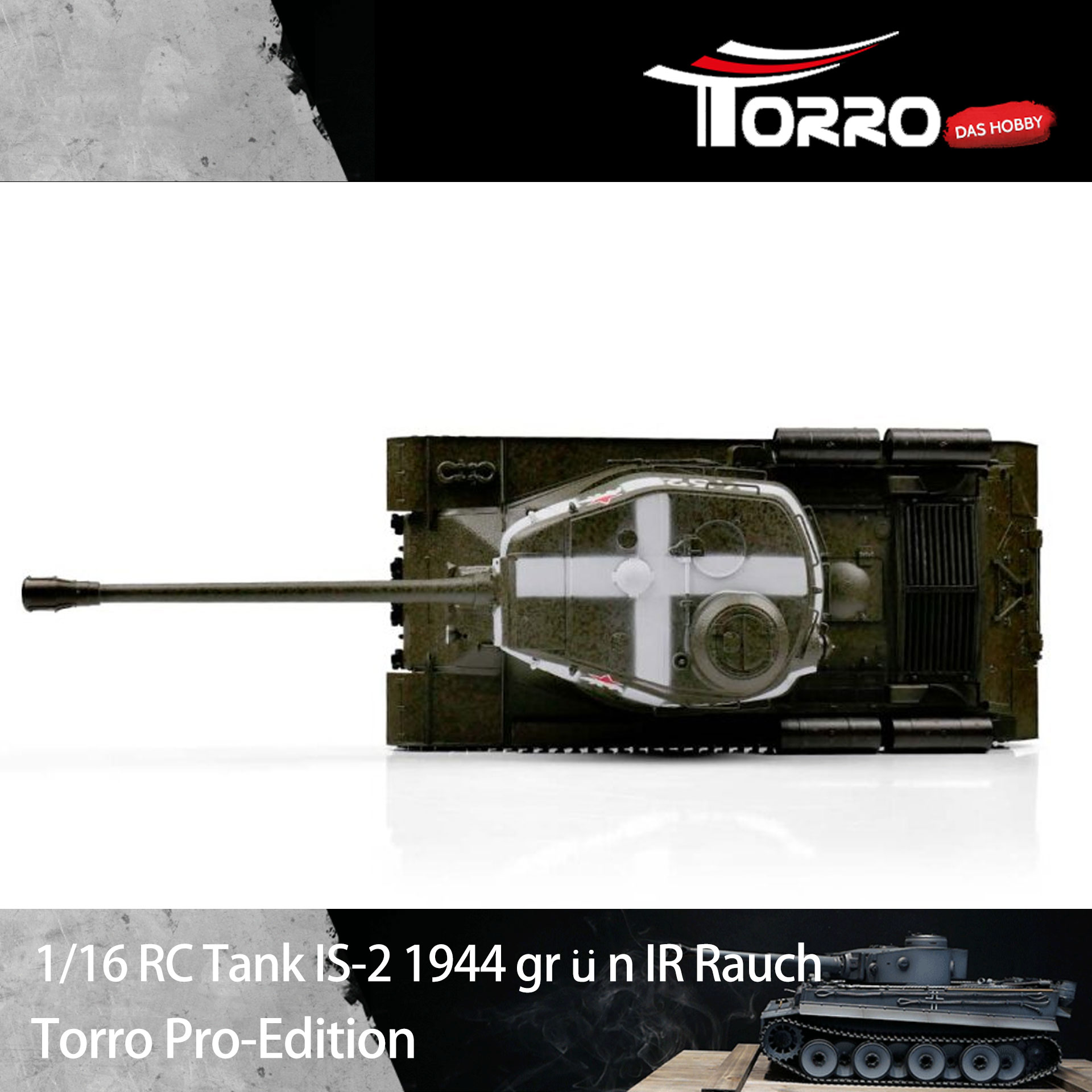 IS-2 1944 重約 7 公斤,是挑剔客戶的理想之選。在專業版中,它以卓越的噴漆質量、2.4 GHz 電路板技術和新揚聲器展現了自己。該模型具有卓越的駕駛特性、多種功能和逼真的聲音。優質鏈條、驅動輪和惰輪和滾輪,以及下部車體和砲塔均由金屬製成。許多小零件和不同的貼紙完美地完善了真實比例的複製品。
