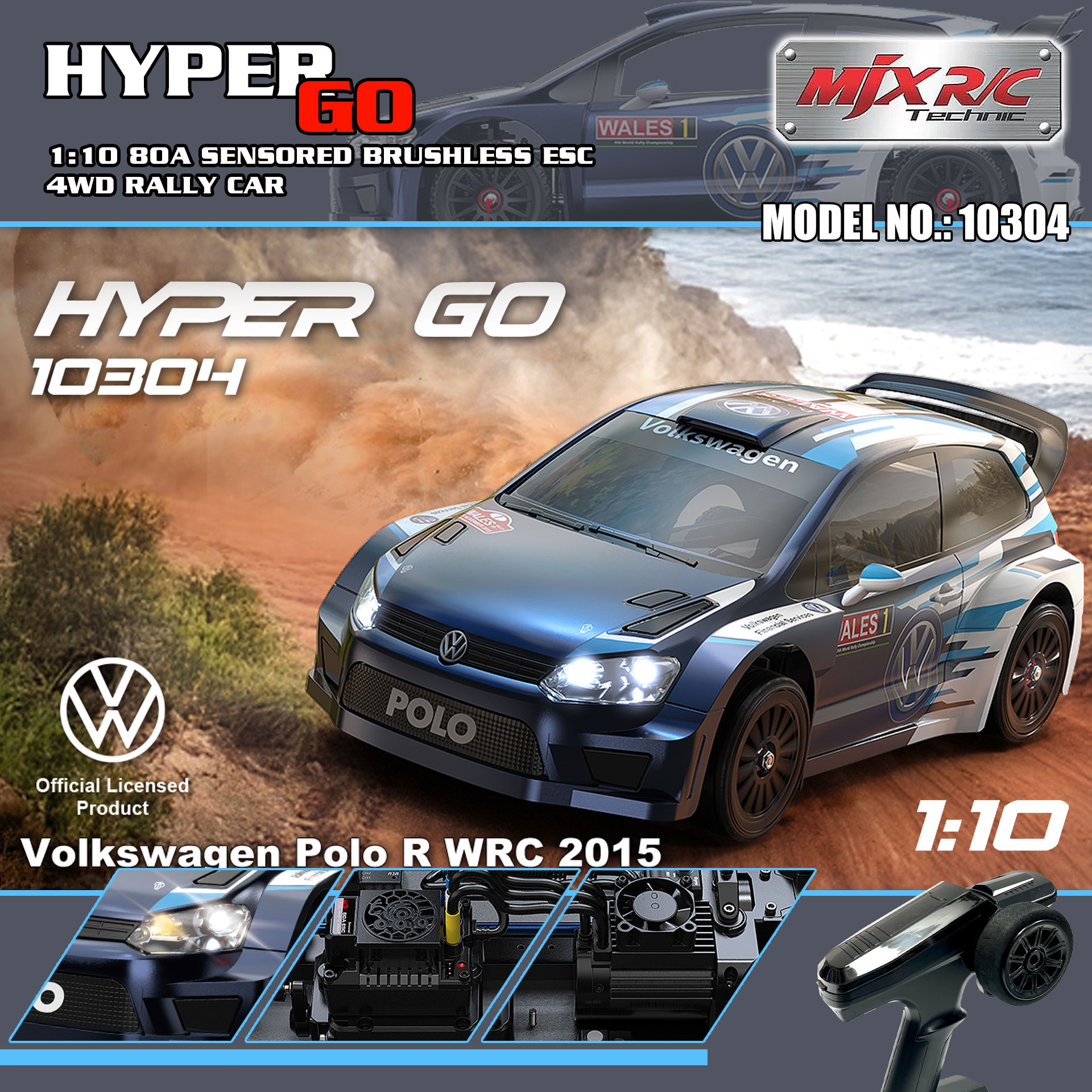 全新 美嘉欣 MJX R/C 1:10 10304 Volkswagen Polo R WRC Rally Car | 有感無刷拉力車 | 內置陀螺儀 | 金屬齒輪 | 油壓避震 | 可用3S電 | 最高速約70KM/H