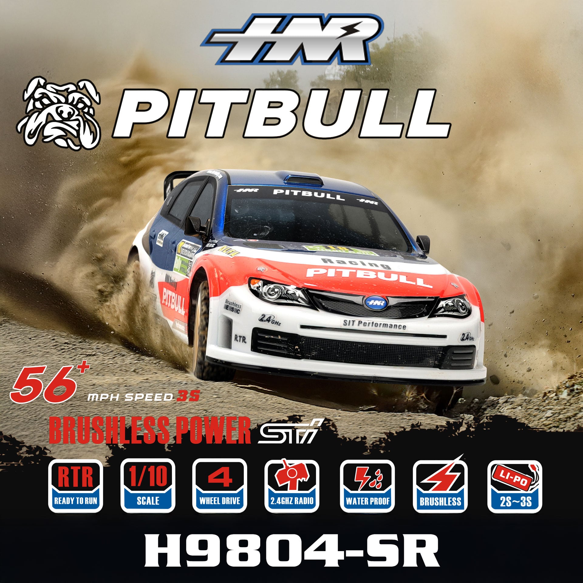 全新 鴻諾 Hong Nor 1:10 PITBULL H9804-SR 無刷拉力車 | 2.4GHz 遙控器 | Hobbywing 60A 防水無刷電變 | 3652 4000KV 無刷馬達 | 90KM/H | 藍紅色