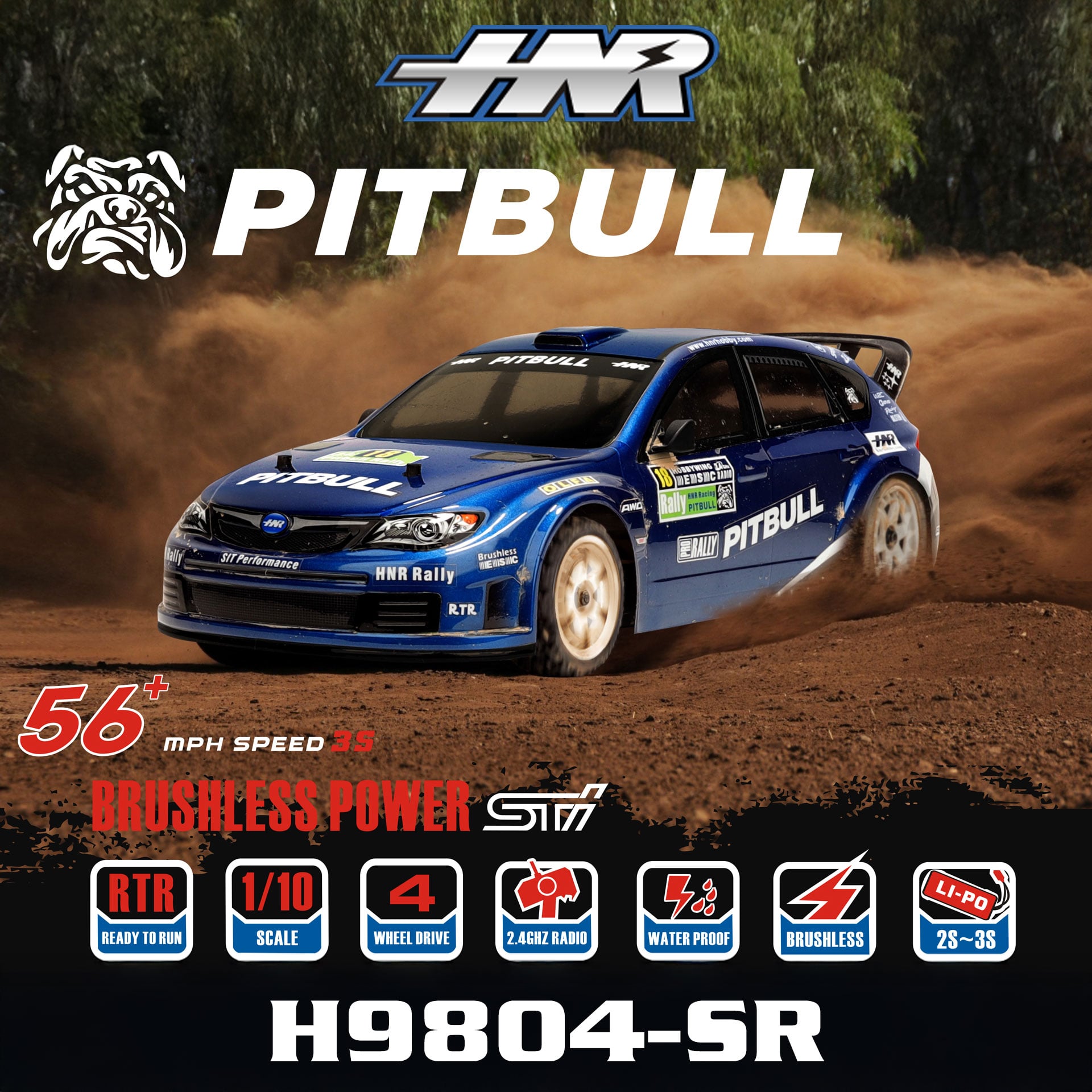 全新 鴻諾 Hong Nor 1:10 PITBULL H9804-SR 無刷拉力車 | 2.4GHz 遙控器 | Hobbywing 60A 防水無刷電變 | 3652 4000KV 無刷馬達 | 90KM/H | 藍色