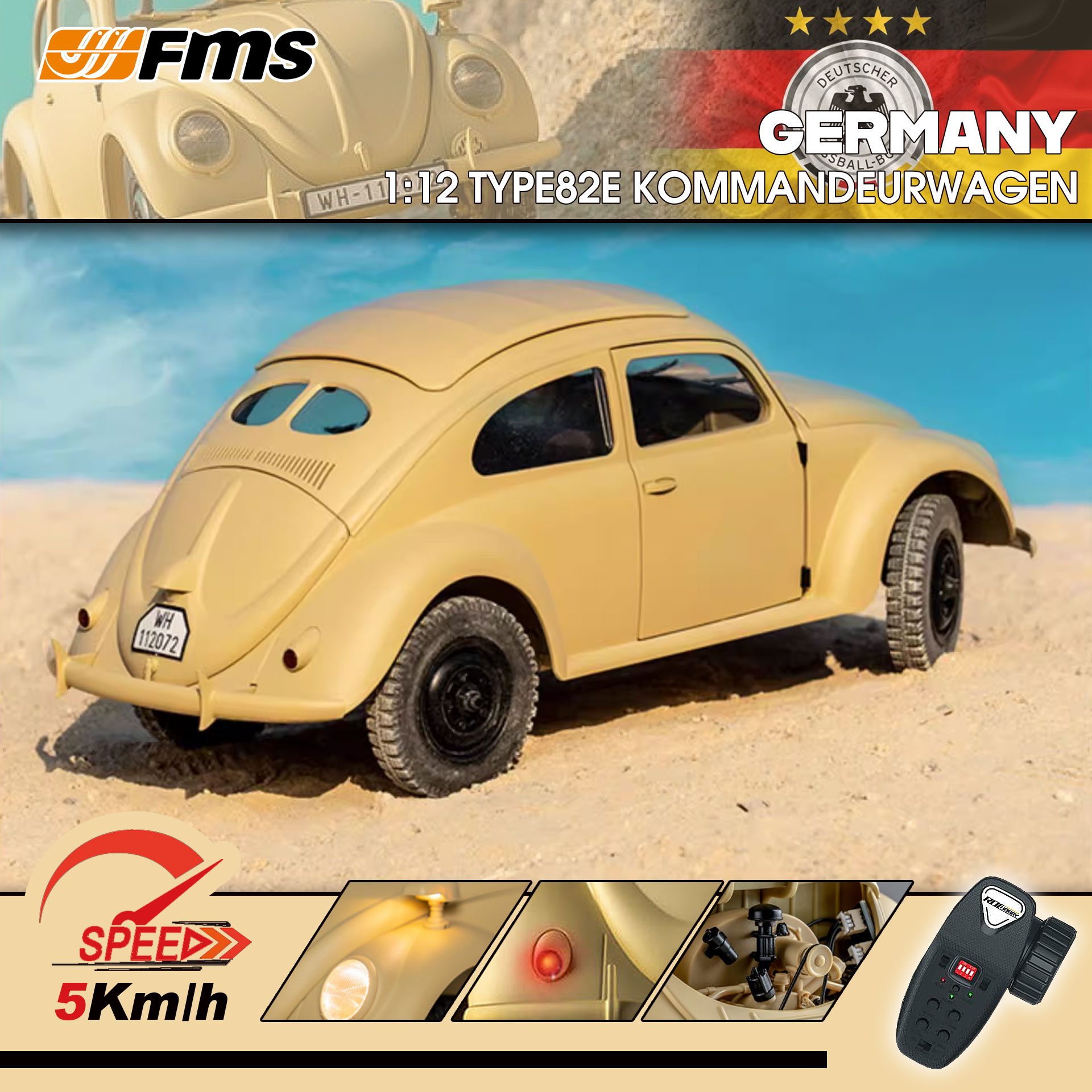全新 🌟 FMS 🌟 1:12 TYPE82E KOMMANDEURWAGEN | 德國軍官專用甲蟲車 | 2.4Ghz 遙控 | 2段速變速波箱 | 2/4輪驅動 | 車頭大燈, 聯動尾燈 | 聯動轉向軚盤 | 迷你遙控車