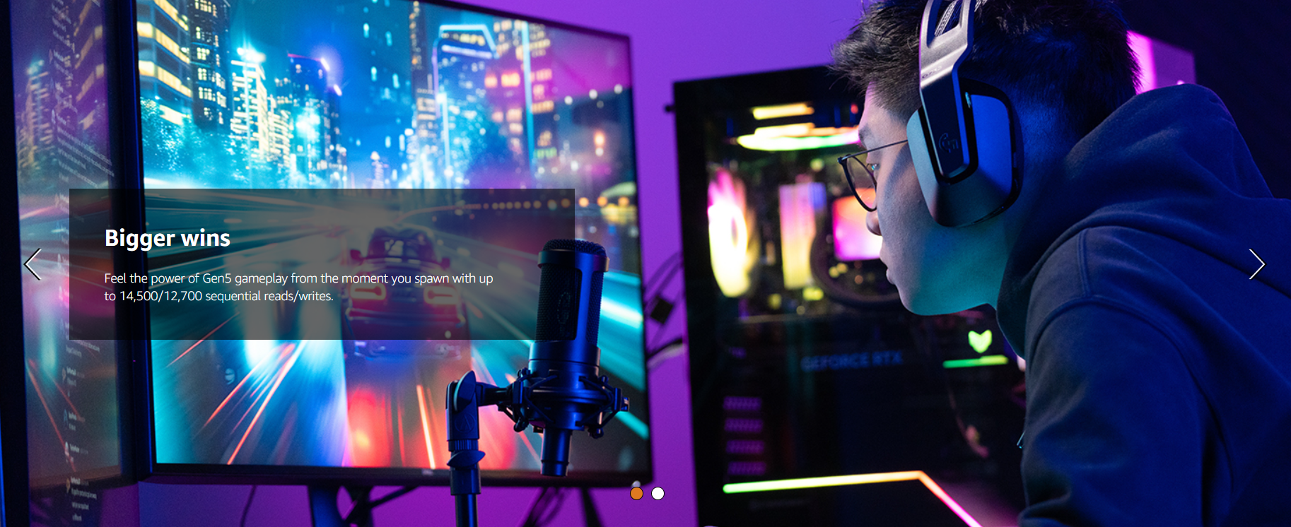 PCIe 5.0 效能:讀取速度高達 14,900 MB/s,寫入速度高達 13,800 MB/s,可加快遊戲載入速度、啟動速度和流暢的多工處理速度。