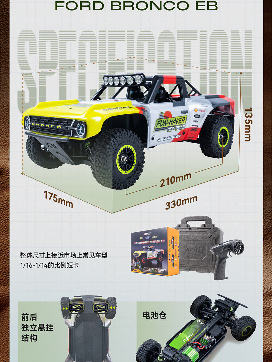 ☑ 1/18 Ford Bronco U4 Funhaver 無刷短卡車* 1 set